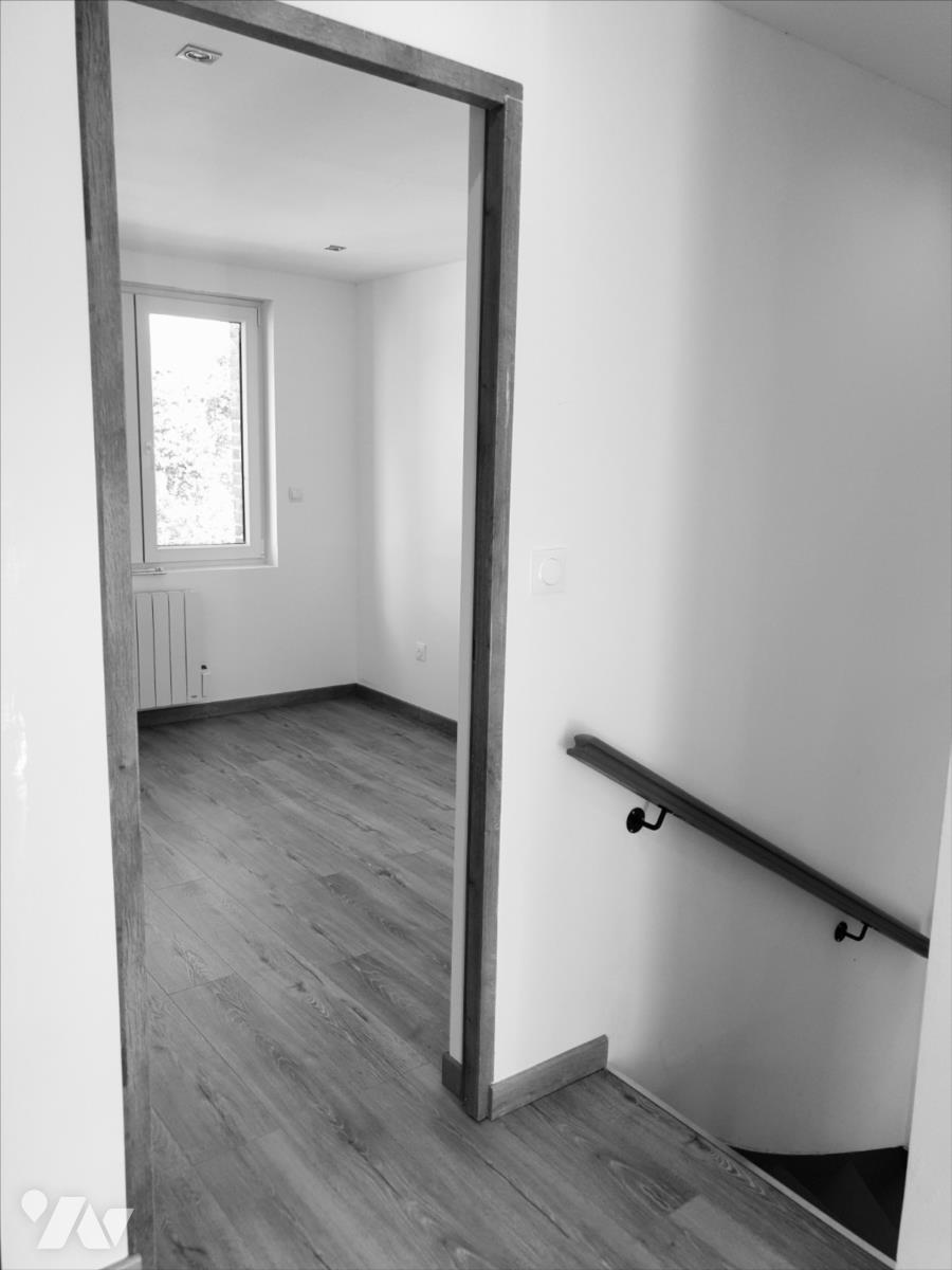 Au rez-de-chaussée : entrée avec placard, wc, salon séjour très lumineux avec poêle à granules (neuf), emplacement cuisine, cellier. Chambre avec salle de bains privative.Au 1er étage : 2 chambres + 2 pièces (ou 3ème et 4ème chambre), salle de douche avec wc.Grand garage de 25 m² attenant avec accès direct au cellier.Menuiseries neuves avec volets électriques.Electricité neuve.Cave.